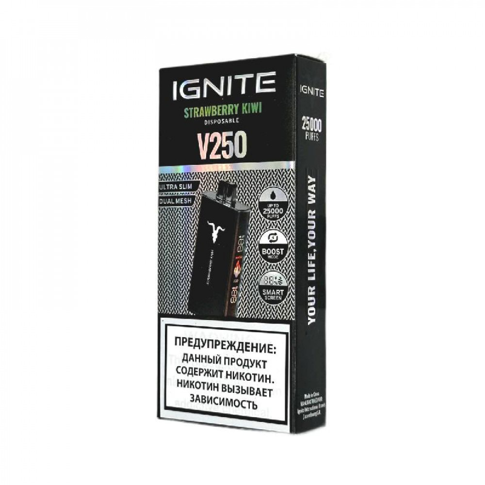 Электронная сигарета Ignite V250 Black 25000 - Strawberry Kiwi (Клубника киви) - купить в Клинцах