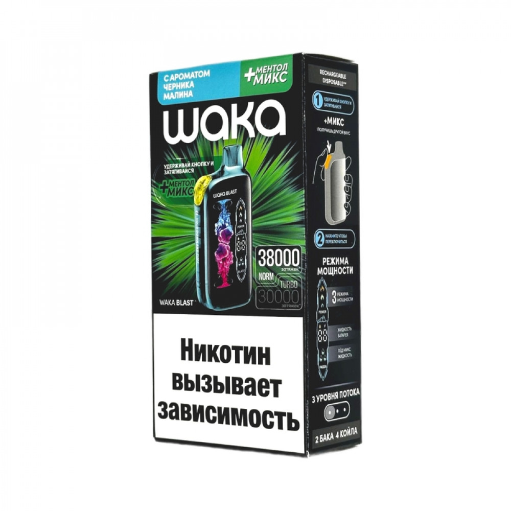 WAKA BLAST 38000 Hard - Черника малина + ментол микс - купить в Клинцах